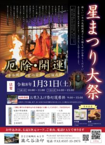日本では平安時代から真言宗や天台宗の密教で「星」を祀り供養する修法が盛んになり、星まつりと呼ばれます。人の運勢は生まれ持った「星」の動きによって左右されることから、これらの星を供養し、個人の一年間の幸福を祈り、災いを除く行事です。